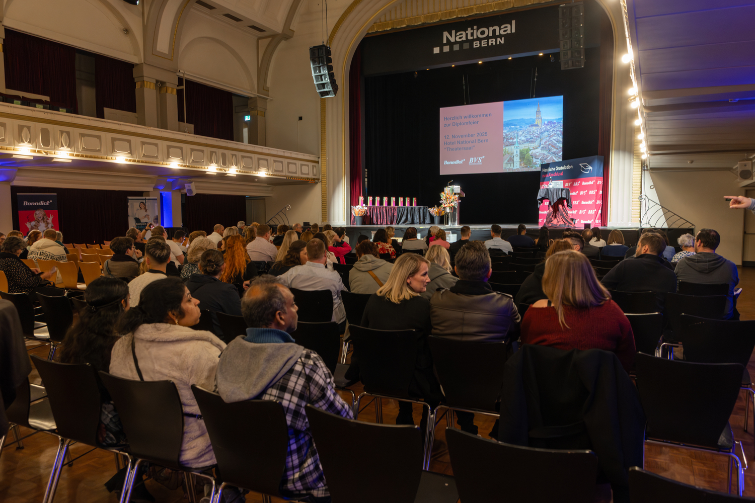 Wertschätzung, Freude und Stolz erfüllten den festlichen Theatersaal des Hotel National. Am 12. November 2025 feierte die BBS/BVS Business School Bern dort die beeindruckenden Leistungen ihrer Absolventinnen und Absolventen in einem würdevollen Rahmen.