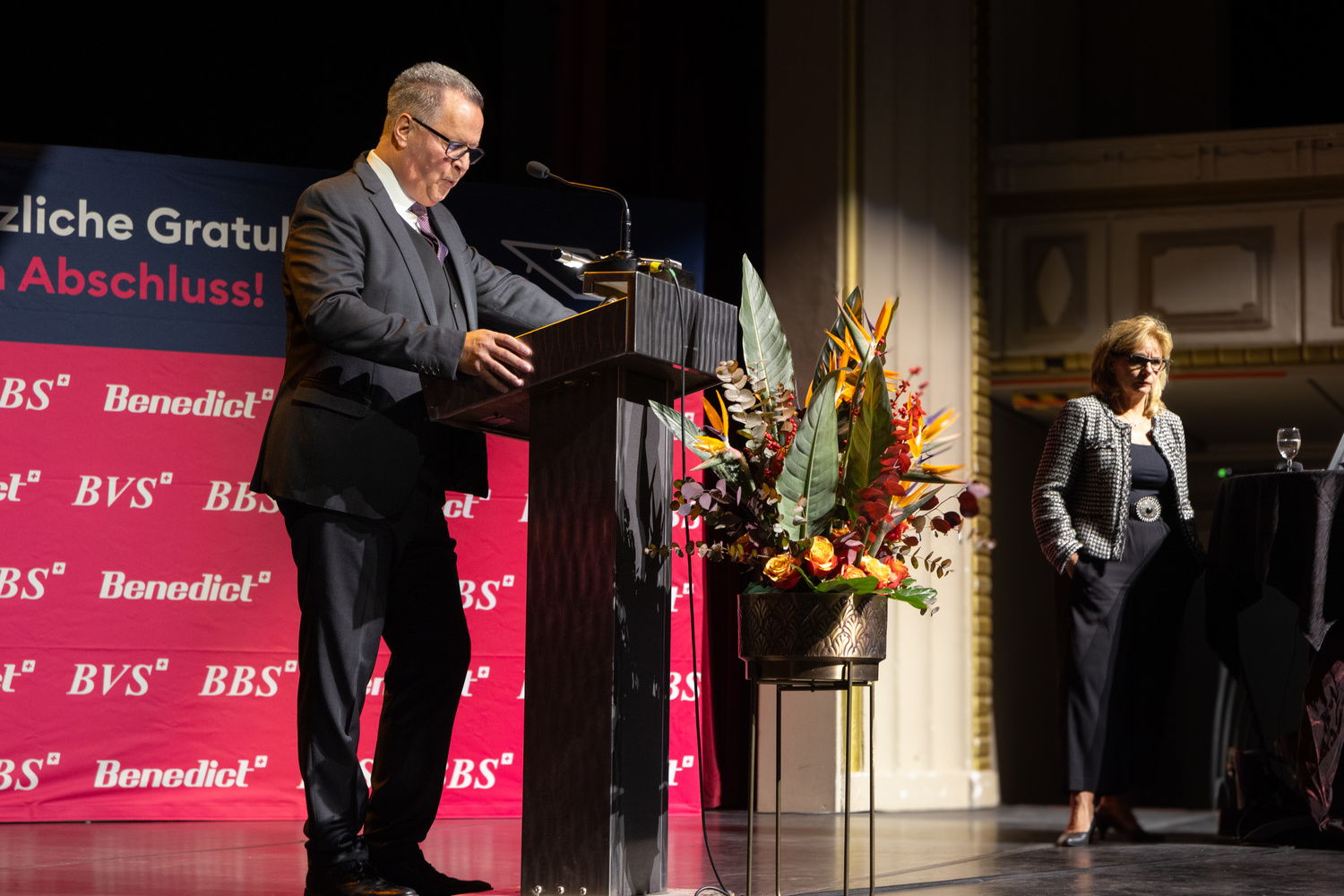Eröffnet wurde die Feier von Marcel Stähli, Schulleiter am Standort Bern. Er würdigte den Einsatz und die Zielstrebigkeit der Absolventinnen und Absolventen: «Ihr habt euch diesen Erfolg mit grossem Engagement verdient – dafür gebührt euch unsere volle Anerkennung.» Gleichzeitig gab er ihnen einen impulsgebenden Gedanken mit auf den Weg: «Nutzt diesen Meilenstein als Ausgangspunkt für eure nächsten Schritte und Ziele.»